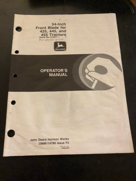 John Deere - 54” Front Blade for 425, 445 & 455 Tractors OMM114789 F2 Operator’s Manual