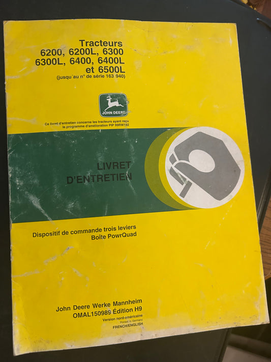 John Deere _ 6200, 6200L, 6300, 6300L, 6400, 6400L & 6500L Tractors _ English/French edition Operator’s Manual OMAL150989 H9