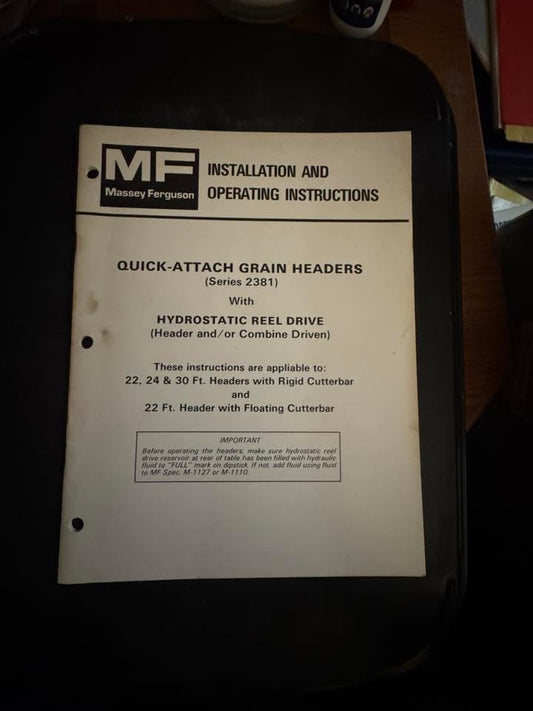 Massey Ferguson Quick-Attach Grain Headers (series 2381) _ Installation & Operating Instructions