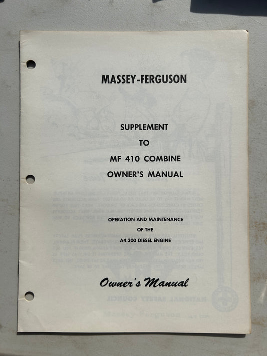 Massey Ferguson Supplement to MF 410 Combine _ Owner’s Manual