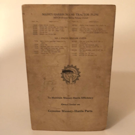 Massey-Harris No 9B Tractor Plow (First used 1938) Repair Parts List