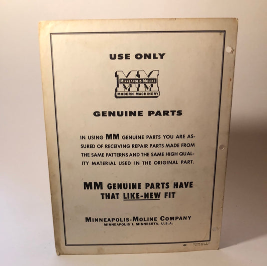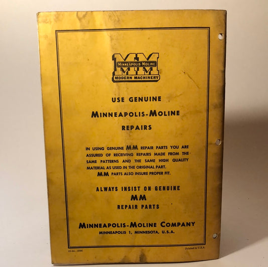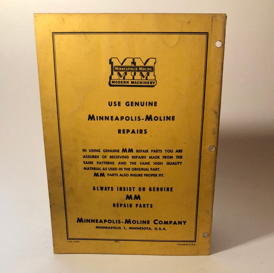 Minneapolis Moline No R-772G for UM Series Tractor Mowers - Repair Catalog