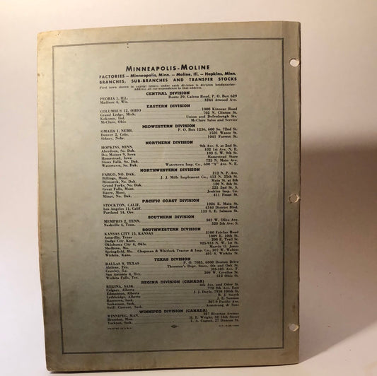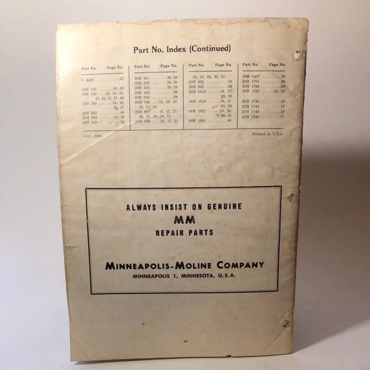 Minneapolis Moline CB & CBH Cultivator - Owner's Assembly-Operation & Repair Catalog