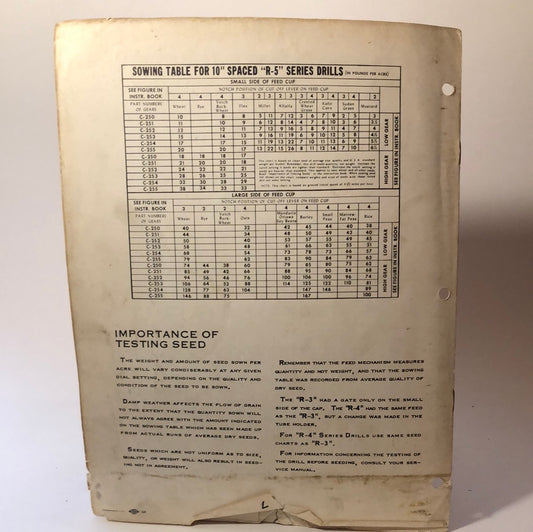 Minneapolis Moline Seed Charts for "R" Series Double Run Drills - C-11 & "P" Series Fluted Feed Drills