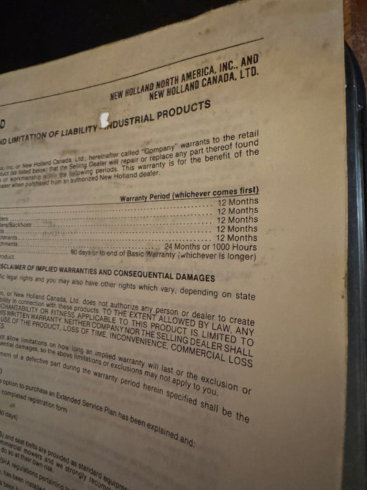 New Holland Super Hayliner 68 Baler - Owner's Manual