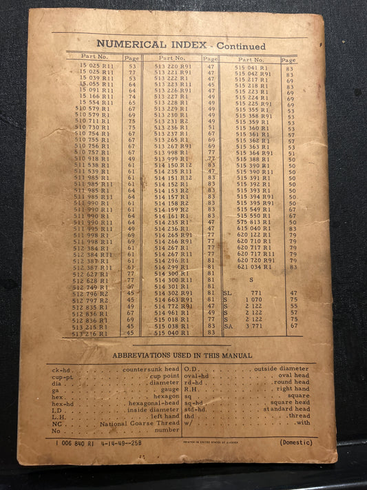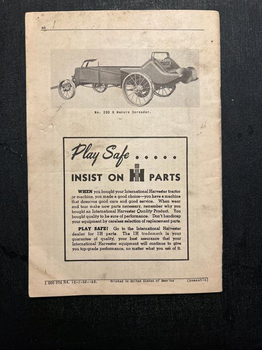 IH McCormick _ No 200-H Manure Spreader _ Setting Up Instructions Parts List