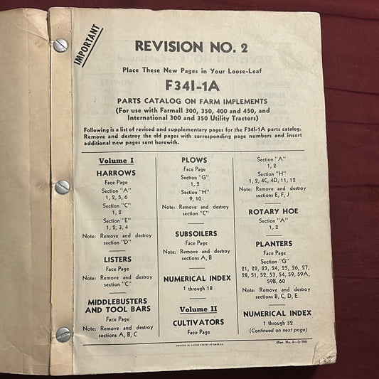 IH McCormick _ Farm Implements for Farmall 300, 350, 400 & 450 and International 300 & 350 Utility Tractors F341-1A _ Parts Catalog