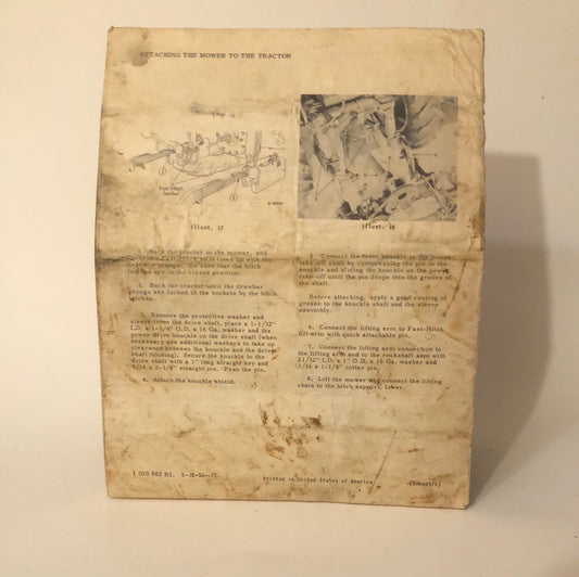 IH McCormick Power Drive Hitch Attachments for No 100 Balanced Mower for pulling 1, 2, 2A Hay Conditioners
