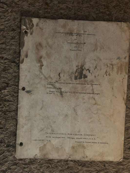 IH _ International 295 Planter Unit _ Supplement to Operator’s Manual