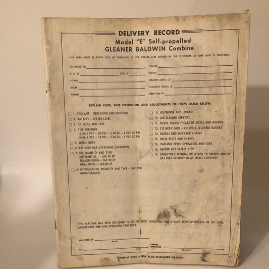 Allis-Chalmers Model E Self-propelled Gleaner Baldwin Combine _ Dealers Instructions