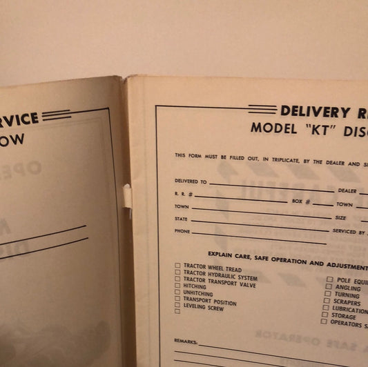 Allis-Chalmers Model KT Disc Harrow _ Operators Manual
