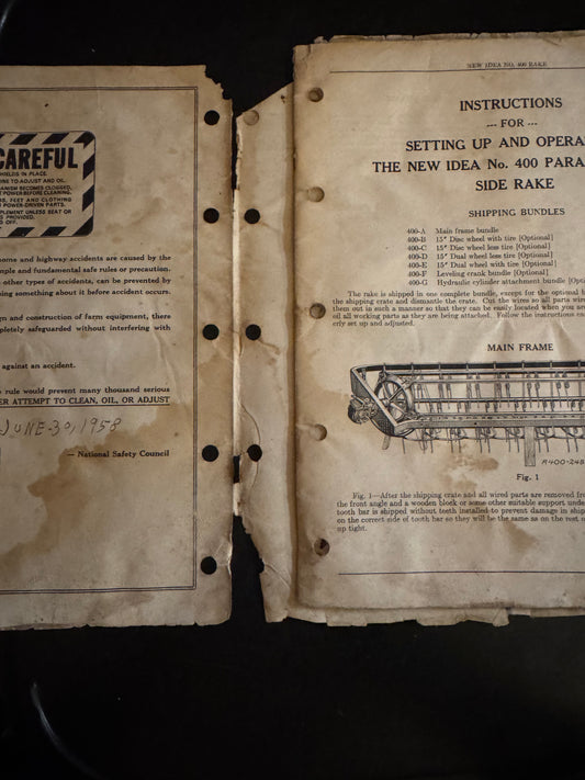 New Idea _ no 400 Parallel Bar Side Rake no R-156 _ Instructions & Repair Parts List