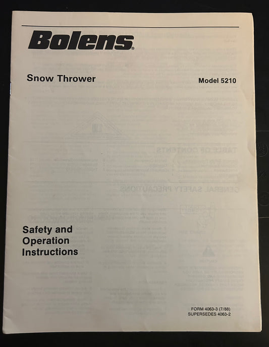 Bolens _ Snow Thrower model 5210 _ Safety & Operation Instructions