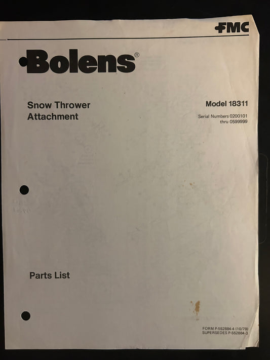 Bolens _ Snow Thrower Attachment model 18311 _ Parts List