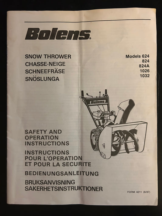 Bolens _ Snow Thrower model 624, 823, 824A, 1026 & 1032 _ Safety & Operation Instructions