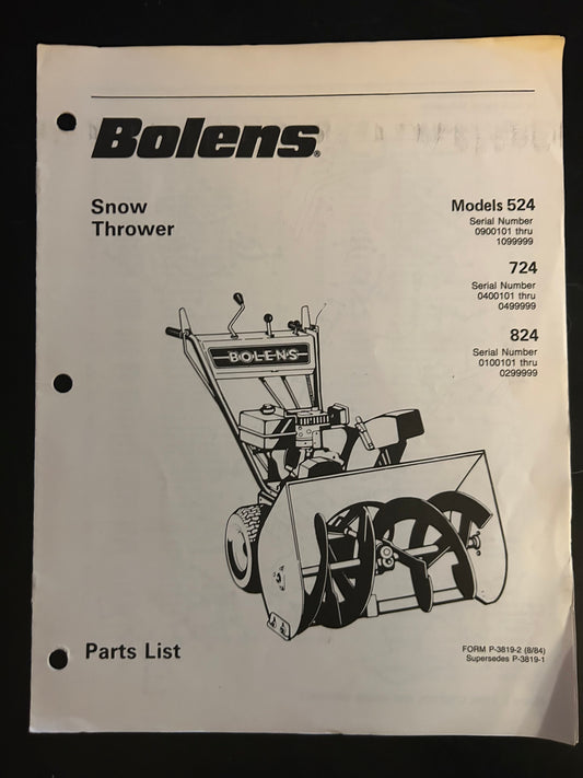 Bolens _ Snow Thrower model 524, 724 & 824 _ Parts List