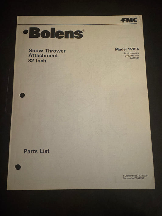 Bolens _ Snow Thrower Attachment 32” model 15104 _ Parts List