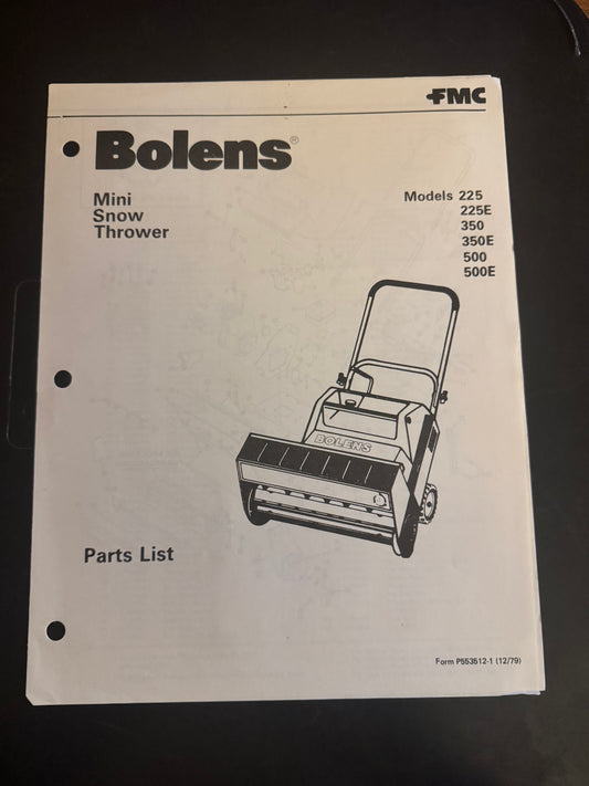 Bolens _ Mini Snow Thrower model 225, 225E, 350, 350E, 500 & 500E _ Parts List