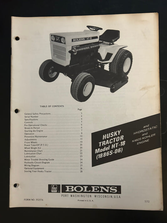 Bolens Huskys _ 1886 Hydrostatic _ Owner Operation & Maintenance Manual