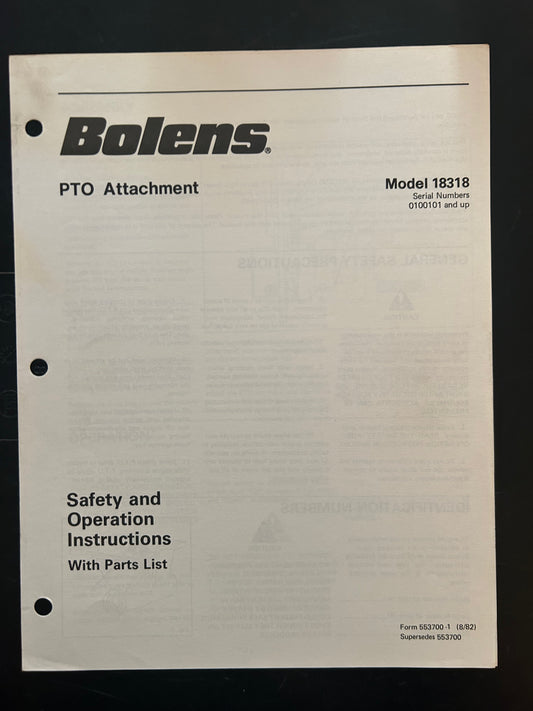 Bolens _ PTO Attachment model 18318 _ Safety & Operation Instructions with Parts List