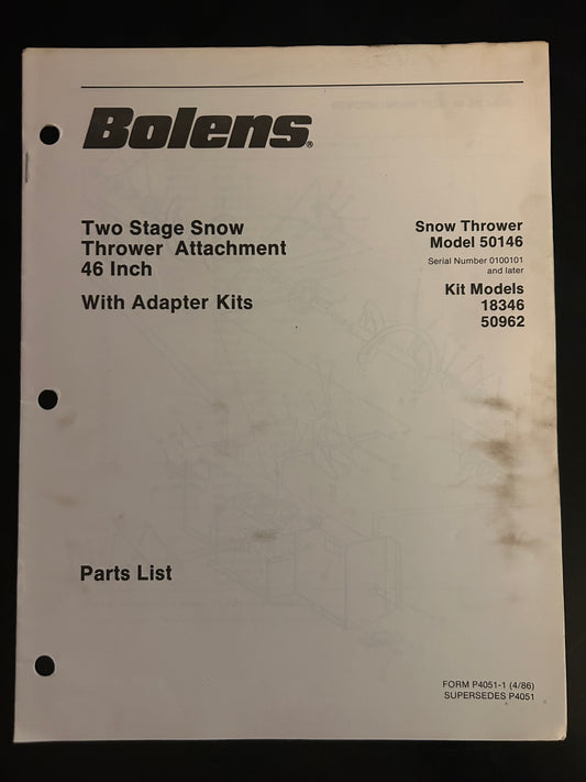 Bolens _ Two Stage Snow Thrower Attachment 46” model 50146 _ Parts List