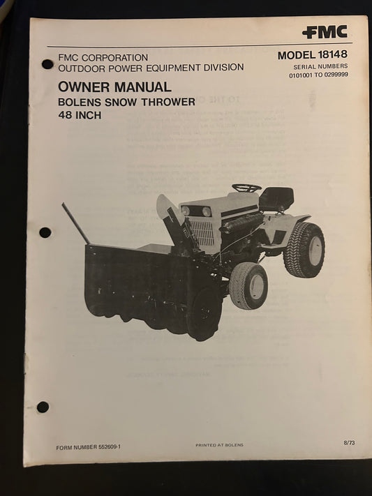 Bolens _ Snow Thrower 48” model 18148 _ Owner Manual