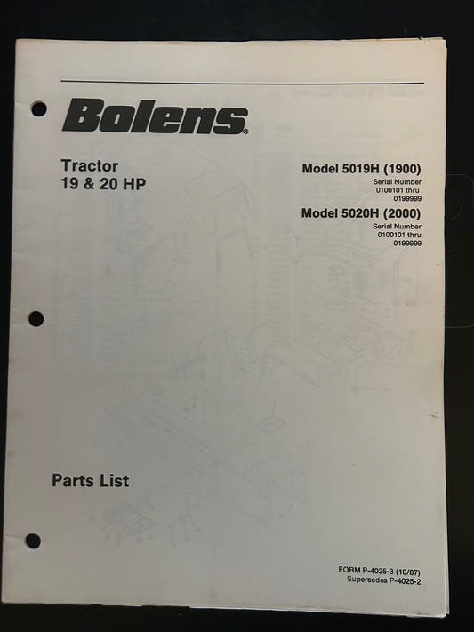 Bolens _ Tractor 19 & 20 HP model 5019H & 1520 _ Parts List