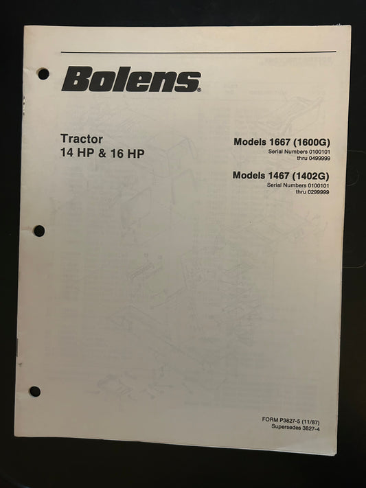Bolens _ Tractor 14 & 16 HP model 1667 & 1467 _ Parts List