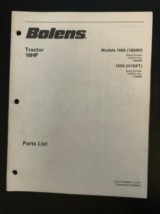 Bolens _ Tractor 16 HP model 1668 & 1659 _ Parts List