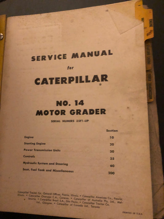 Caterpillar _ No. 14 Motor Grader _ Service Manual Binder