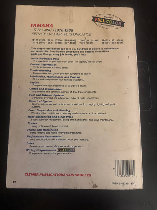 Clymer _ Yamaha IT125-490 • 1976-1986 _ Service • Repair • Performance