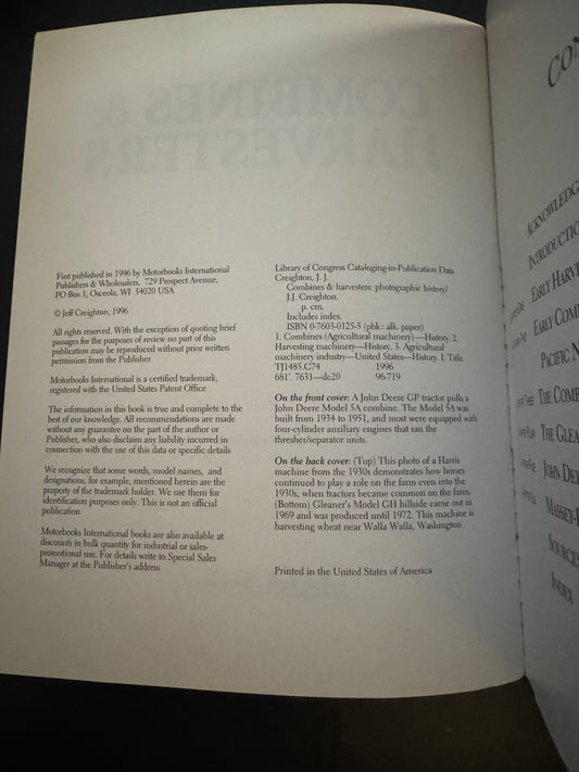 Combines & Harvesters Photographic History by Jeff Crieghton