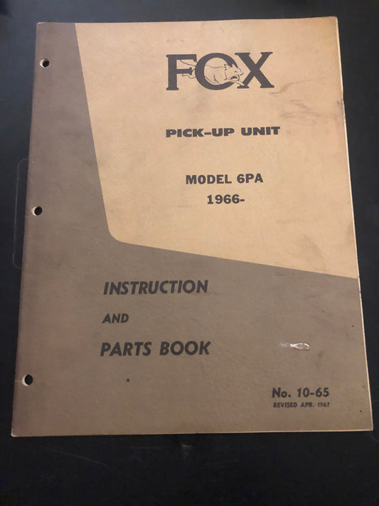 Fox _ Pick-Ip Unit model 6PA _ Instruction & Parts Book no 10-65