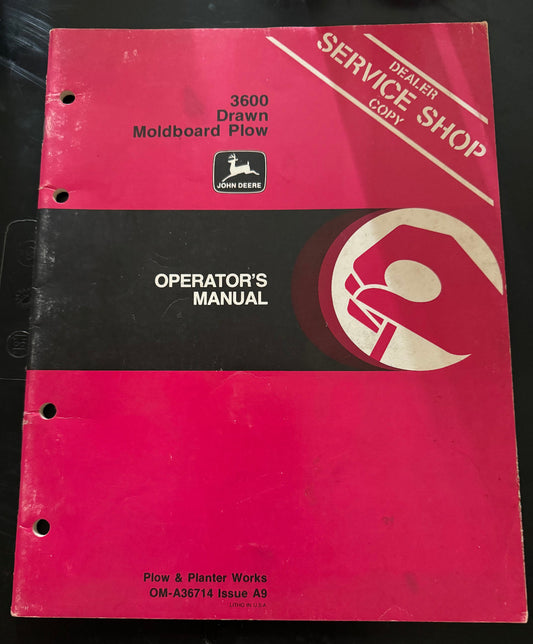 John Deere _ 3600 Drawn Moldboard Plow _ Operator's Manual