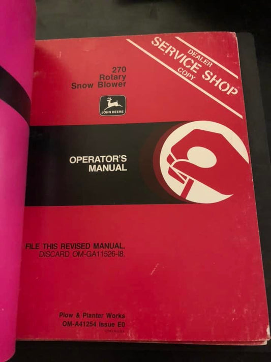 John Deere _ 270 Rotary Snow Plow _ Operator's Manual