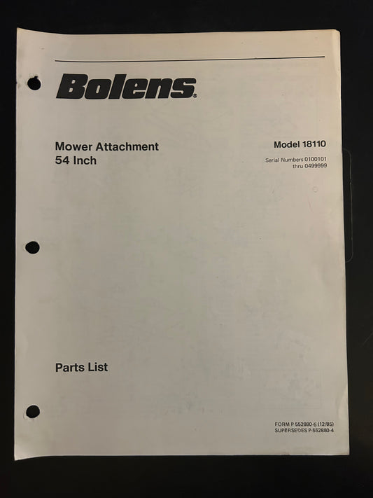 FMC Bolens _ 54” Mower Attachment model 18110 _ Parts List