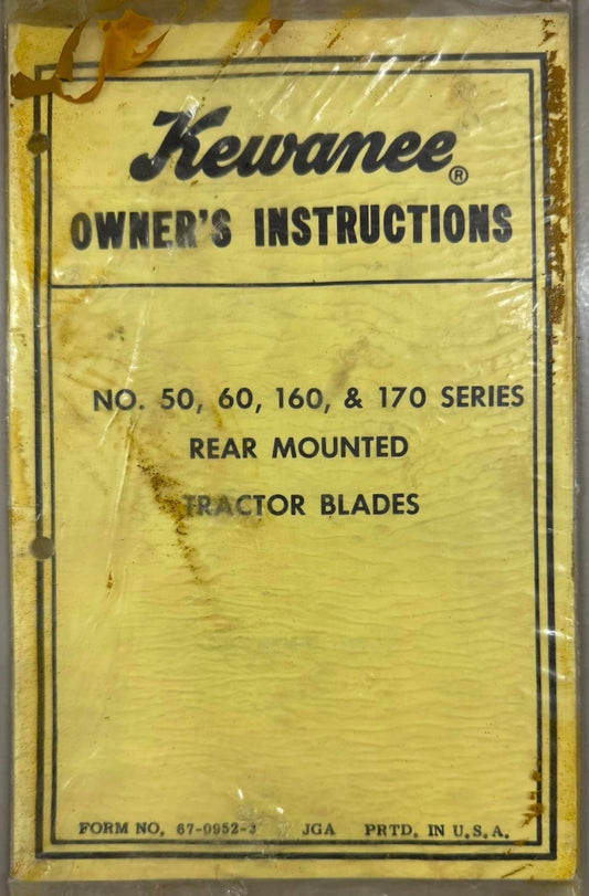 Kewanee _ No 50, 60, 160 & 170 series rear mounted Tractor Blades _ Owner’s Instructions