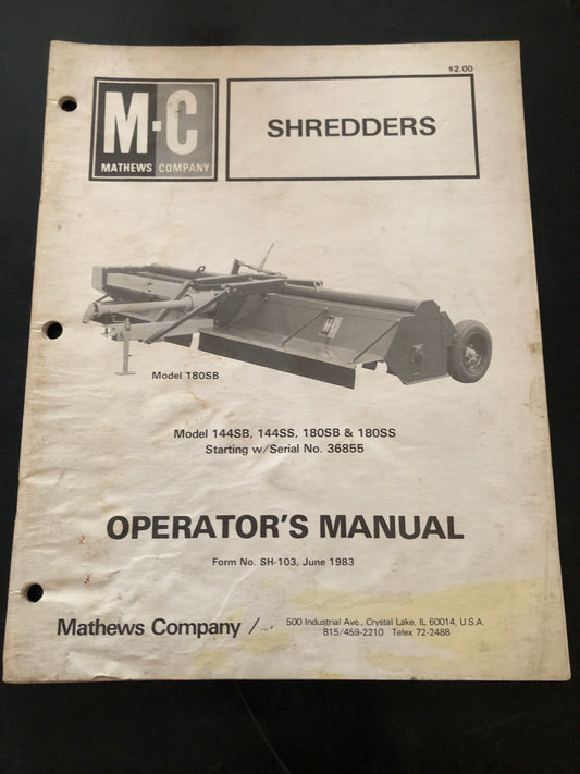 MC _ models 144 SB, 180 SB & 240 SB Shredders _ Operator’s Manual