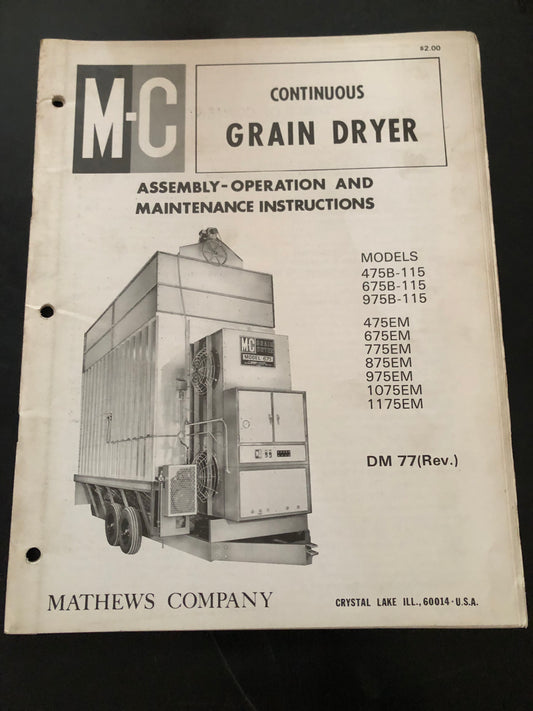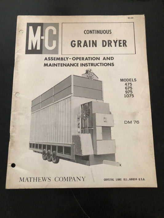 MC _ Continuous Grain Dryer models 475, 675, 975 & 1075 _ Assembly-Operation & Maintenance Instructions