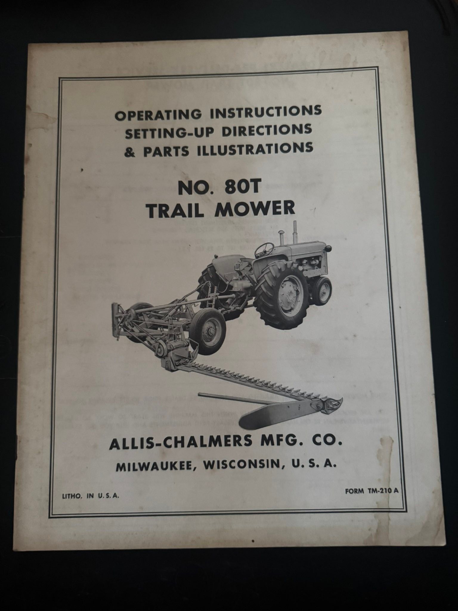Allis-Chalmers No 80T Trail Mower _ Operating Instructions, Setting-Up Directions & Parts Illustrations