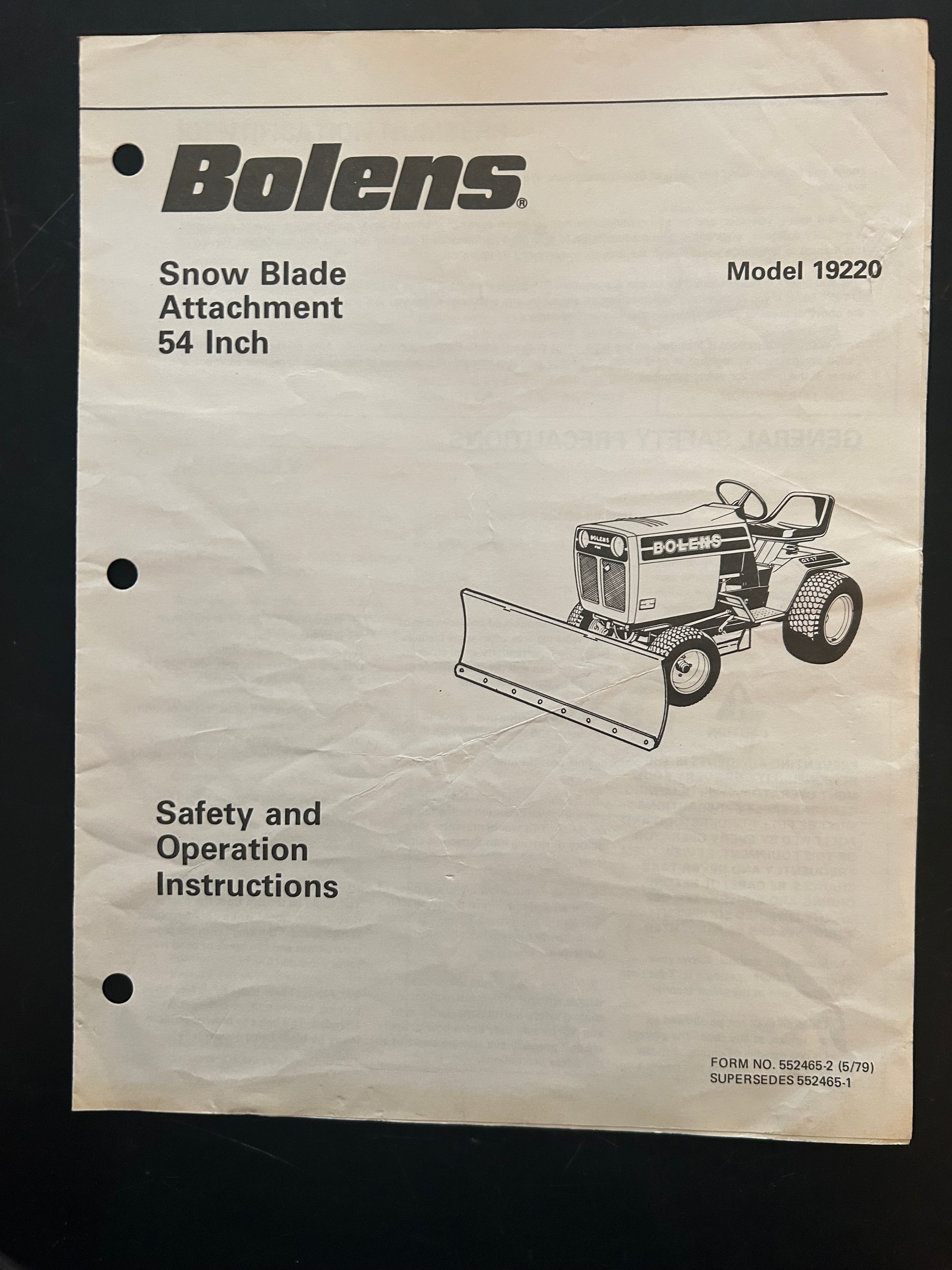 Bolens _ 54” Snow Blade Attachment model 19220 _ Safety & Operation Instructions