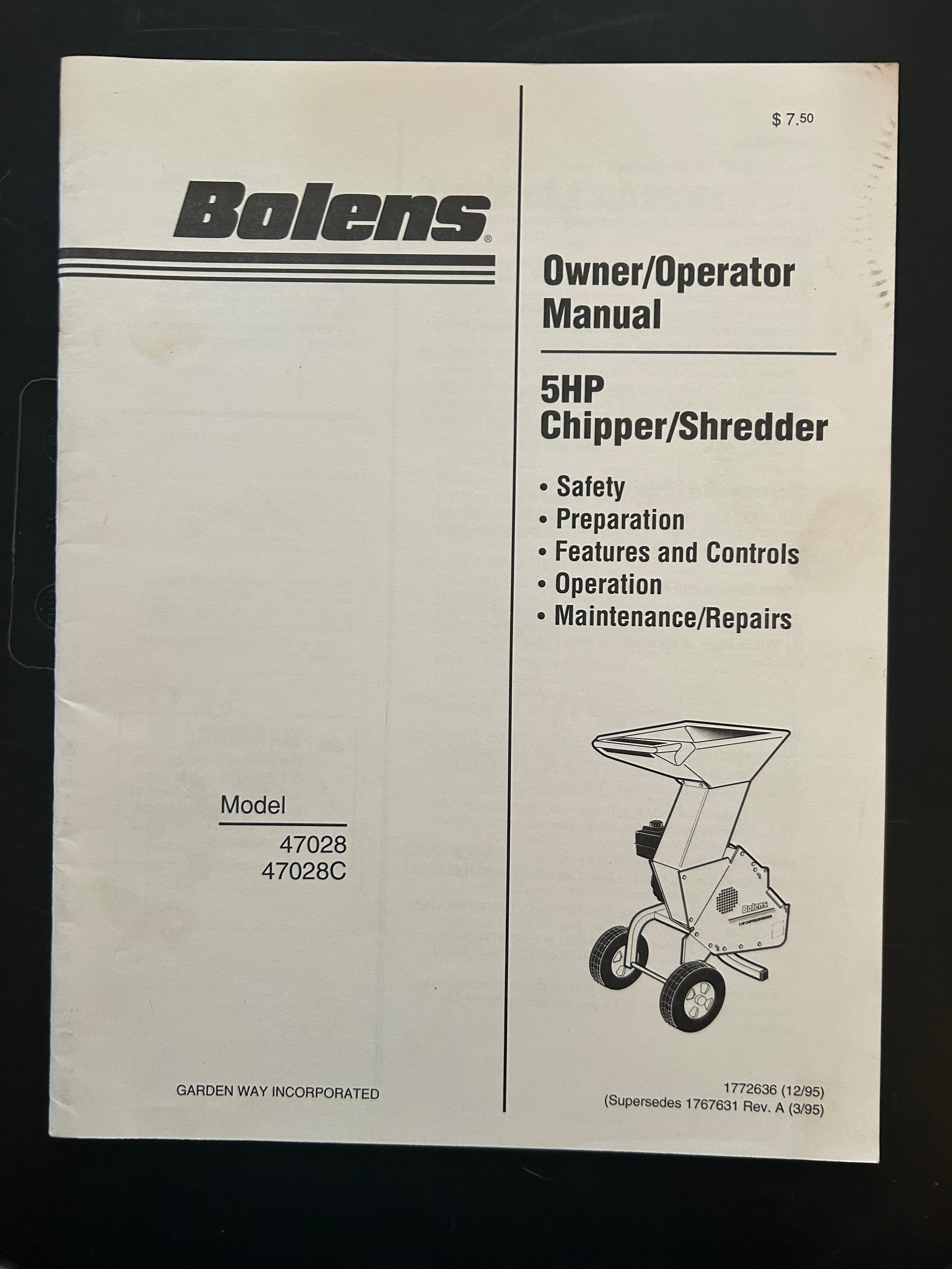 Bolens _ 5HP Chipper/Shredder model 47028 & 47028C _ Owner/Operator Manual