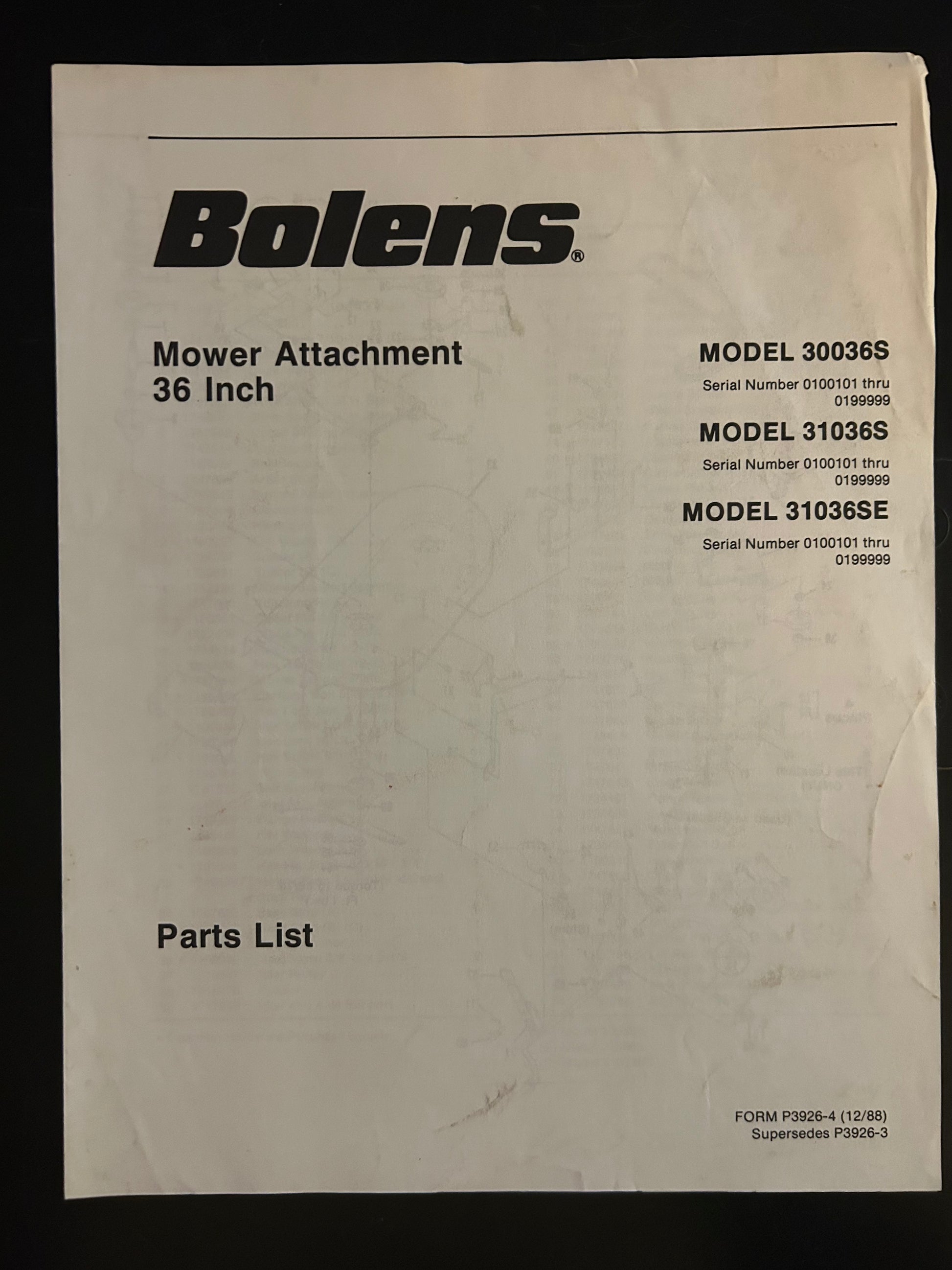 Bolens _ Mower Attachment 36” model 30036S, 31036S & 31036SE _ Parts List