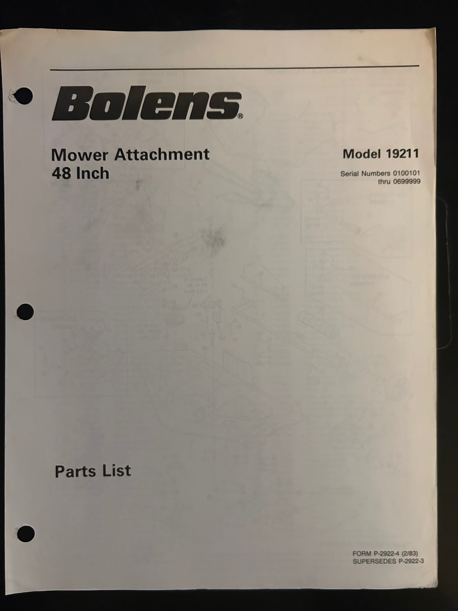 Bolens _ Mower Attachment 48” model 19211 _ Parts List