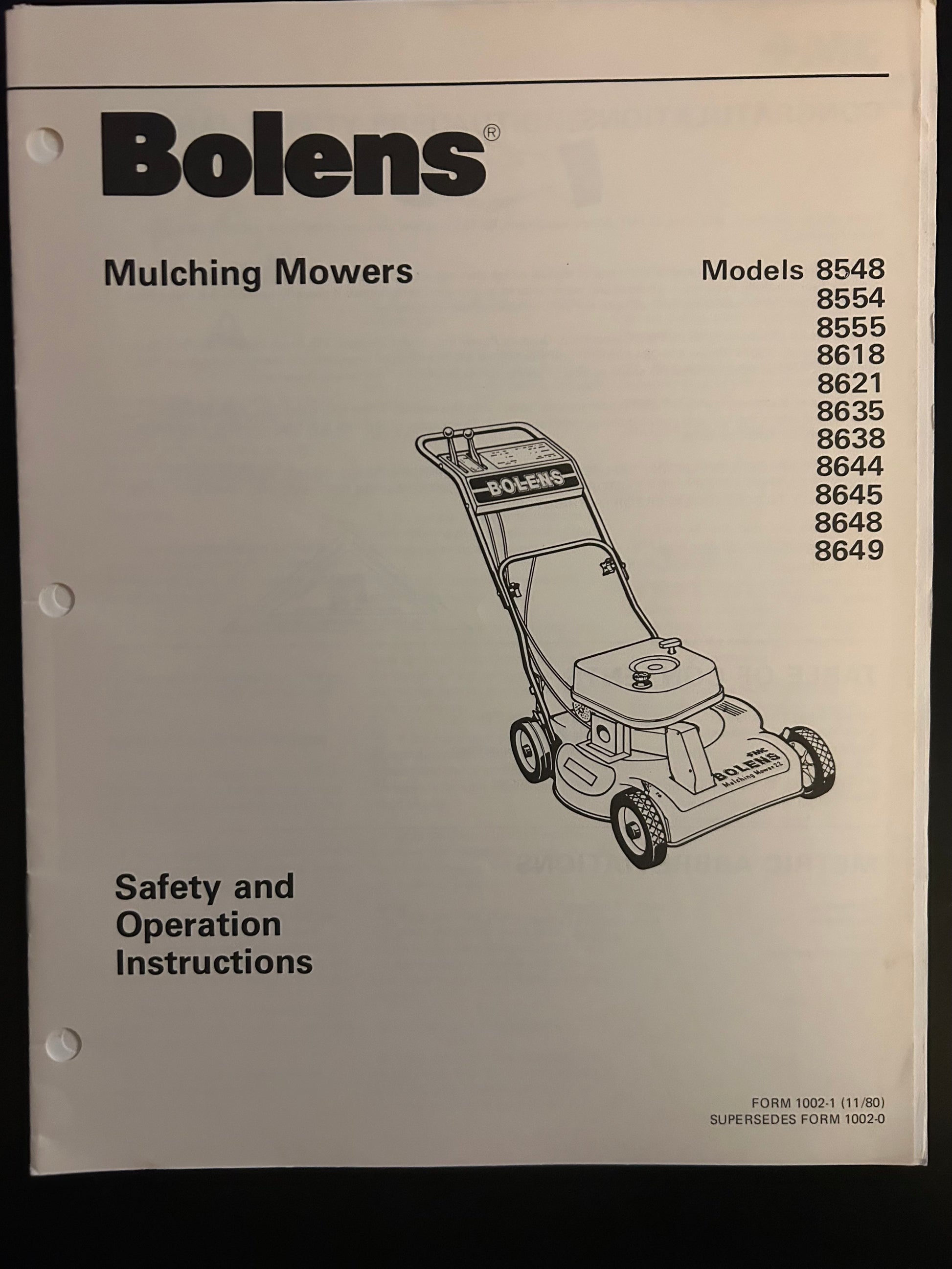 Bolens _ Mulching Mowers models 8548, 8554, 8555, 8618, 8621, 8635, 8638, 8644, 8645, 8648 & 8649 _ Safety & Operation Instructions