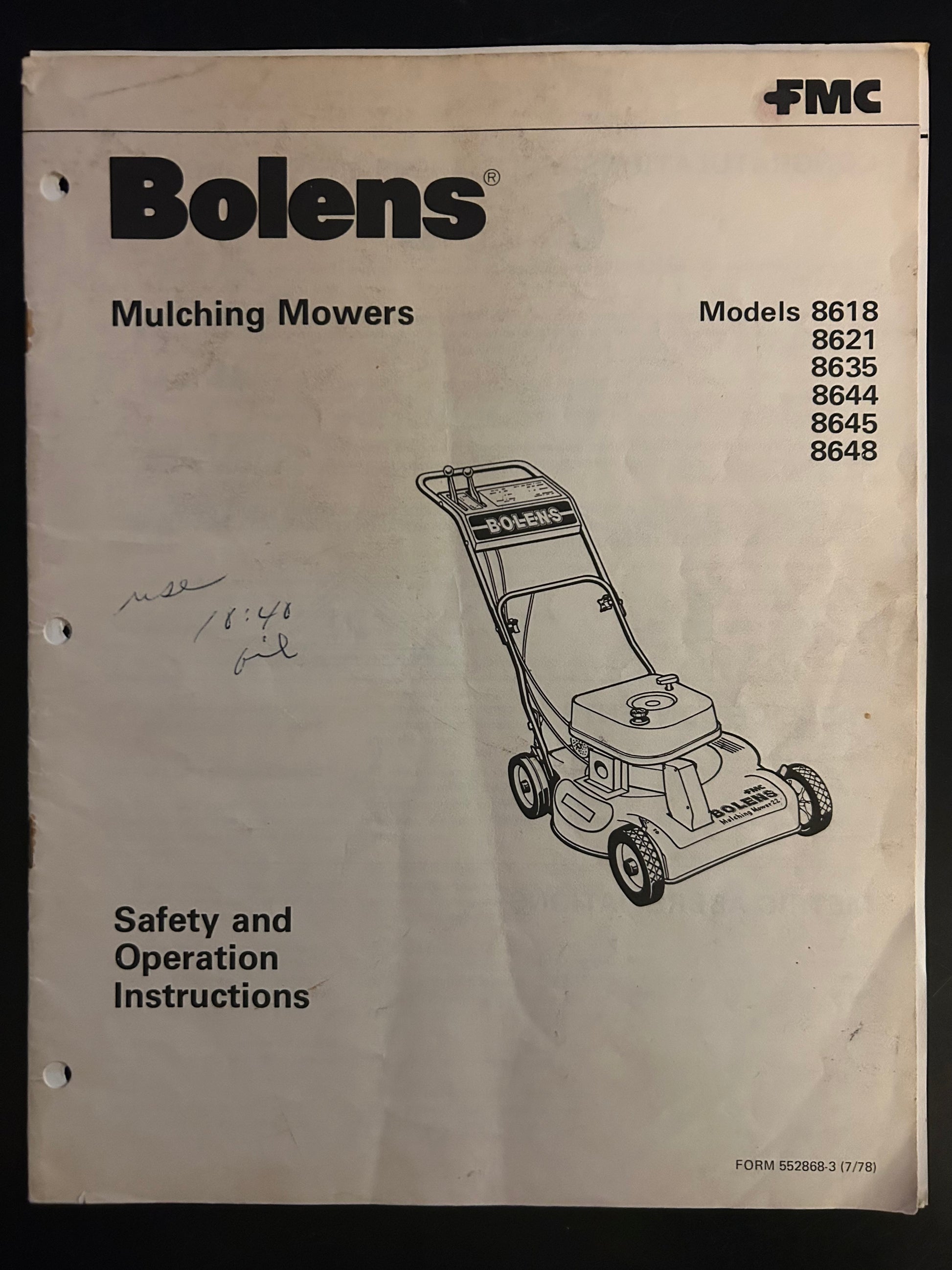 Bolens _ Mulching Mowers models 8618, 8621, 8635, 8644, 8645 & 8648 _ Safety & Operation Instructions