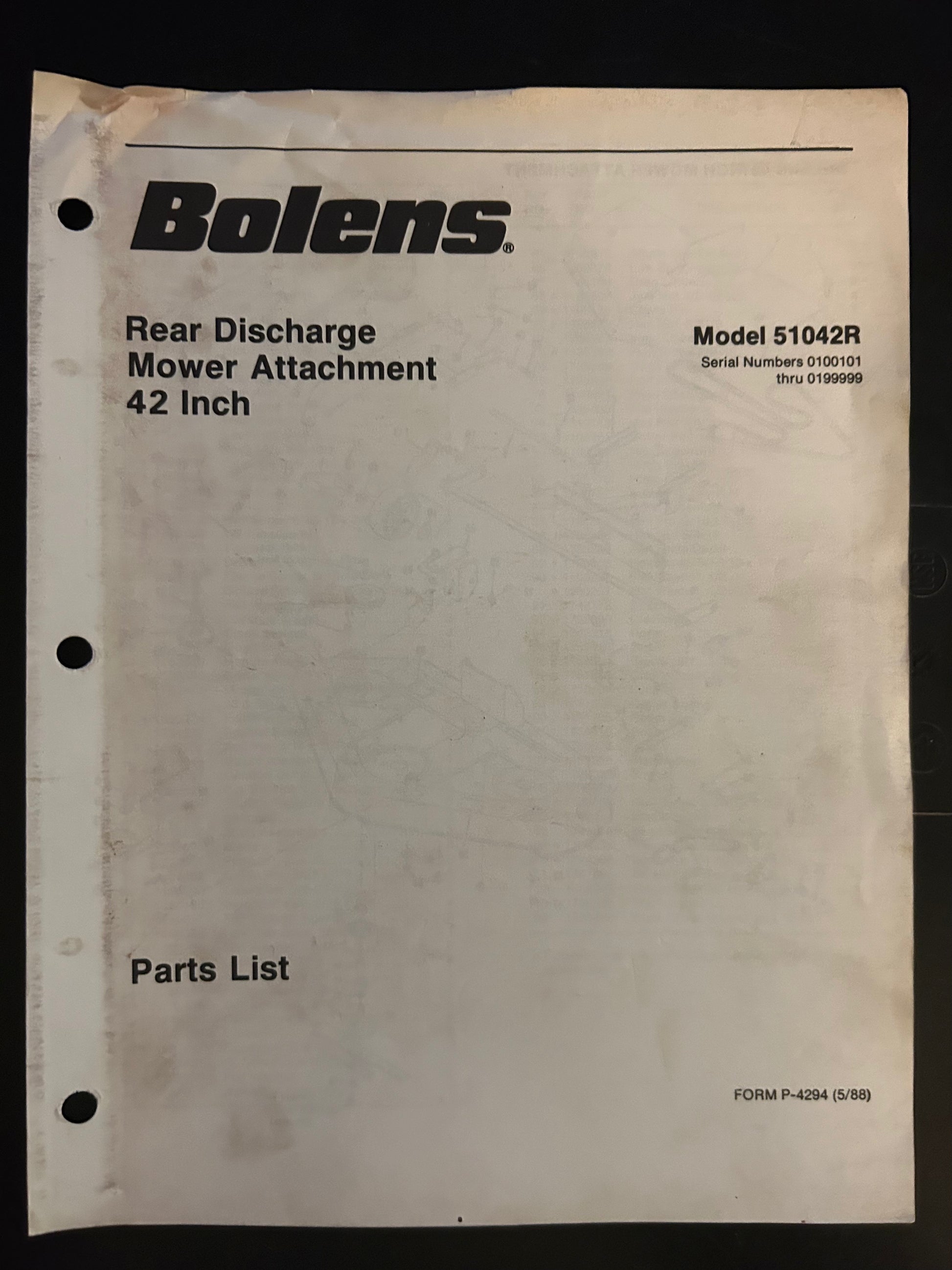 Bolens _ Rear Discharge Mower Attachment 42” model 51042R _ Parts List