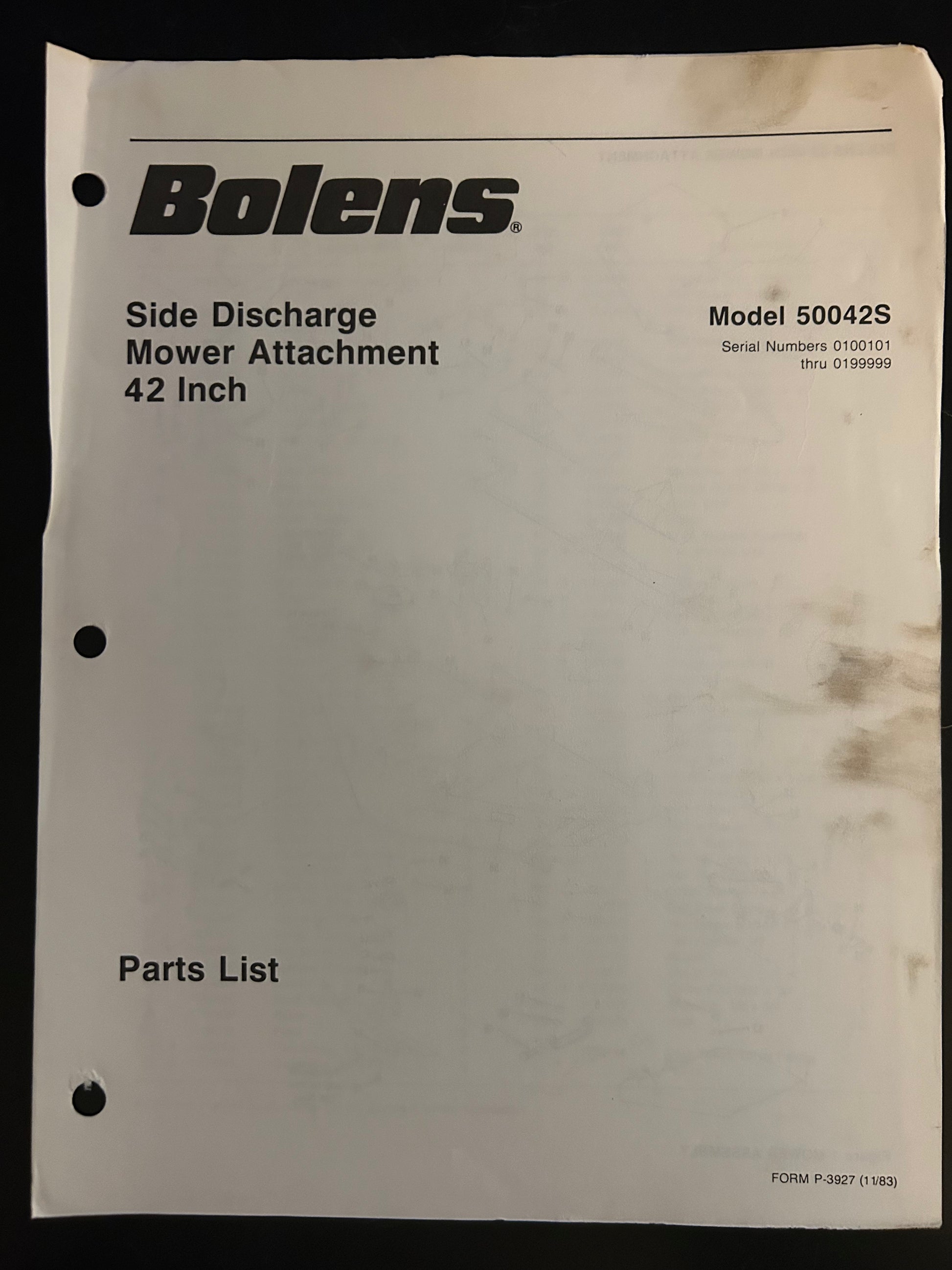Bolens _ Side Discharge Mower Attachment 42” model 50042S _ Parts List
