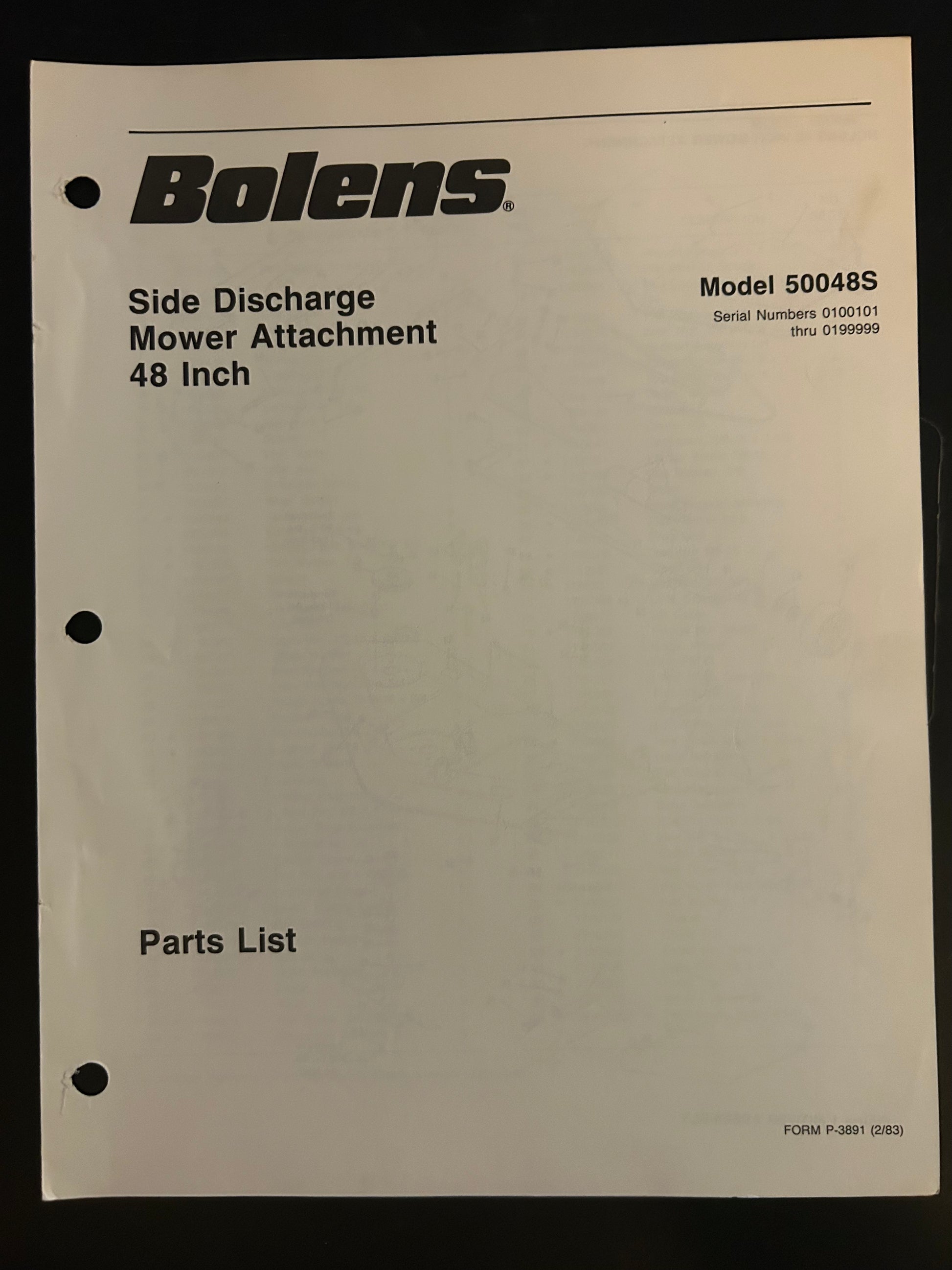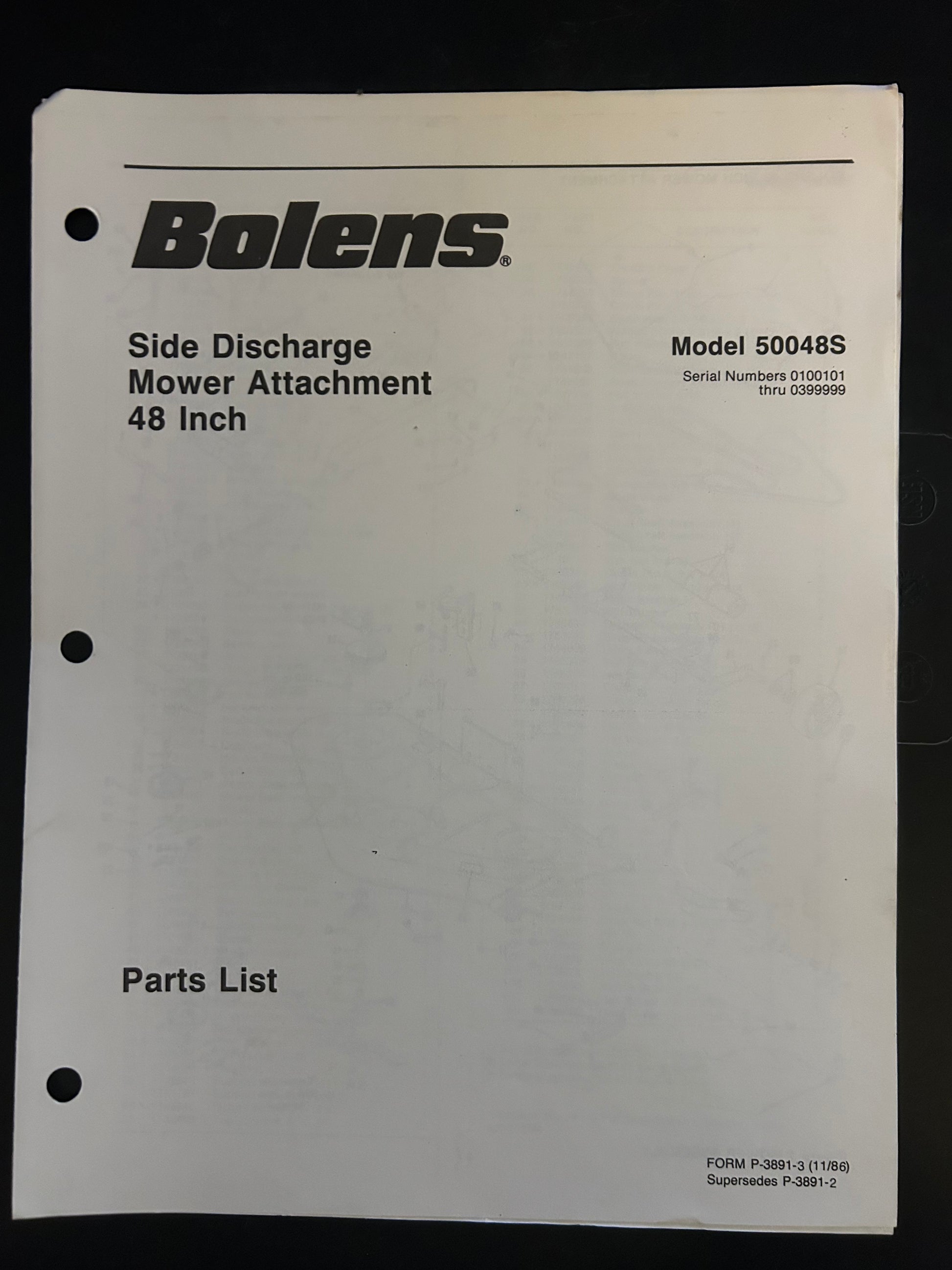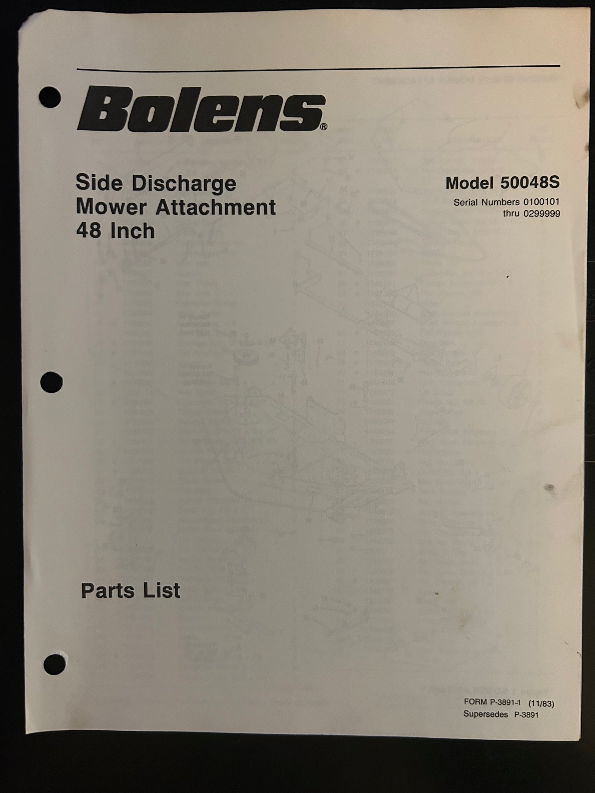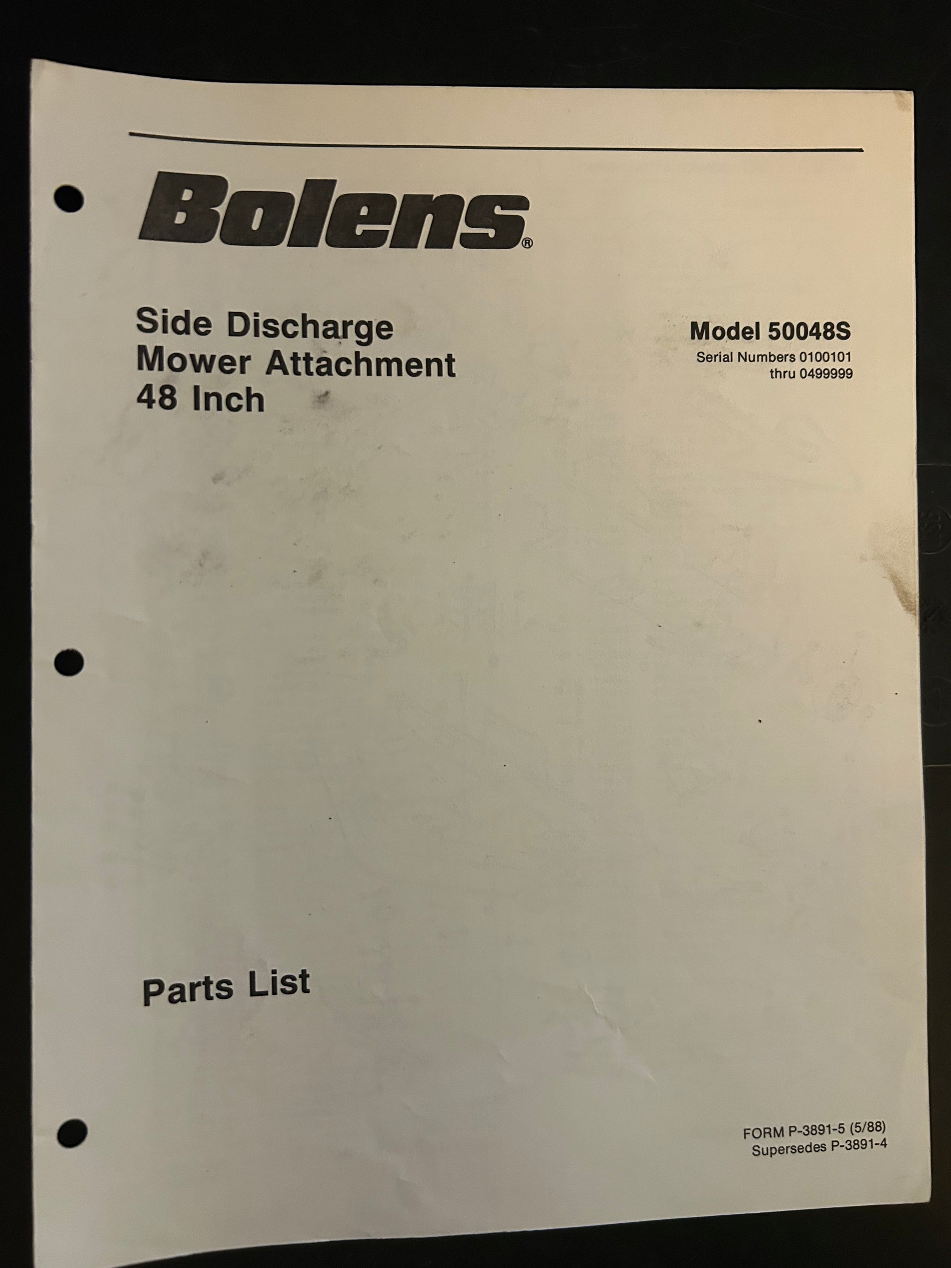 Bolens _ Side Discharge Mower Attachment 48” model 50048S _ Parts List