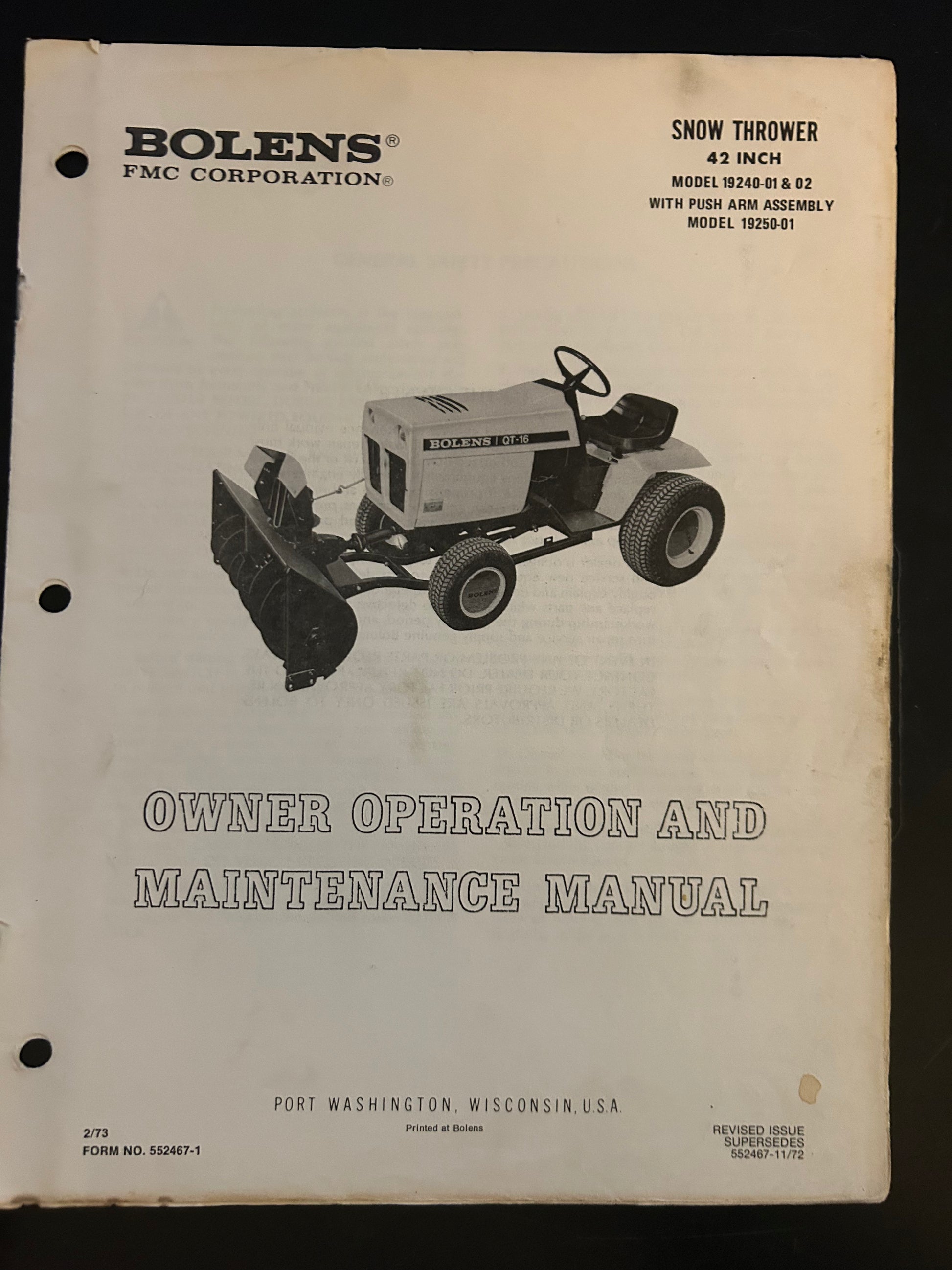 Bolens _ Snow Thrower 42” model 19240-01 & 02 _ Owner Operation & Maintenance Manual